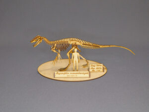 Tamaño del modelo armado: 64cm de largo por 15cm de alto. Contiene instrucciones de armado y ficha técnica ilustrada a color. Cada modelo tiene incluidos carteles indicativos con el nombre y datos técnicos del espécimen y una silueta humana a escala para poder apreciar el tamaño del fósil. Por su complejidad de armado, no se…