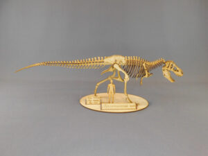 Tamaño del modelo armado: 46cm de largo por 15cm de alto. Contiene instrucciones de armado y ficha técnica ilustrada a color. Cada modelo tiene incluidos carteles indicativos con el nombre y datos técnicos del espécimen y una silueta humana a escala para poder apreciar el tamaño del fósil. Por su complejidad de armado, no se…