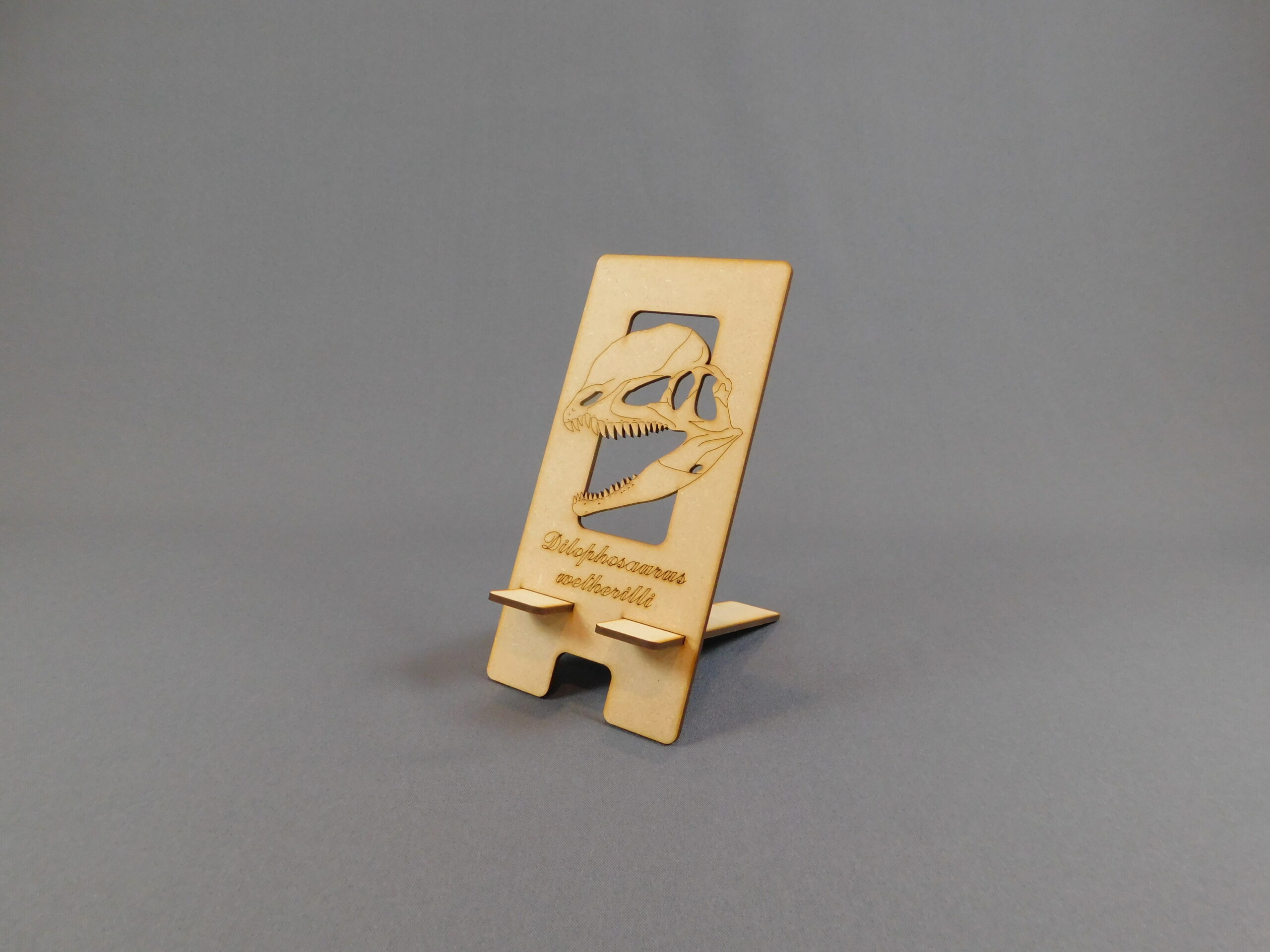 Porta celular realizado en fibrofacil (MDF) cortado con láser.