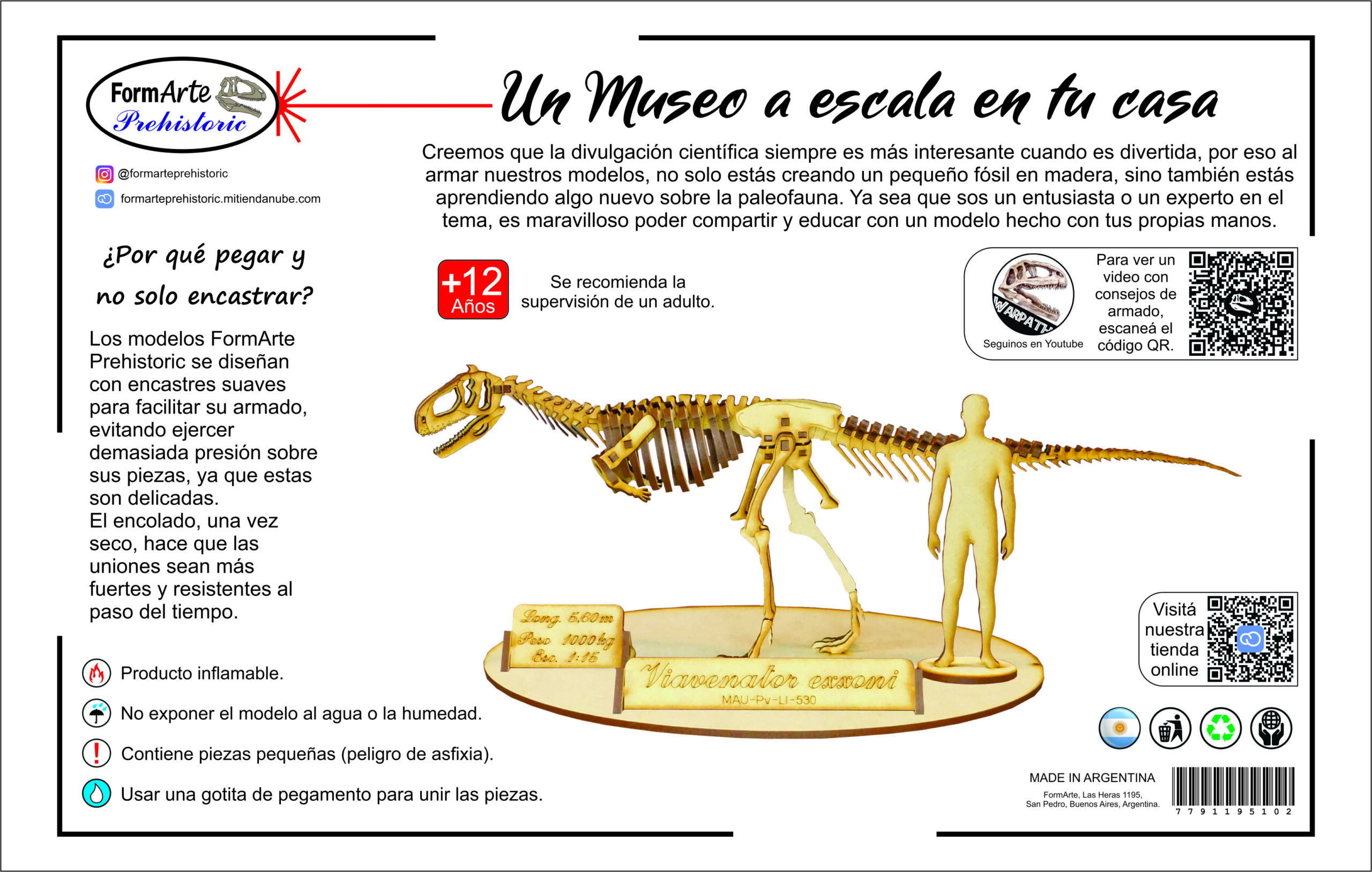 Contiene instrucciones de armado y ficha técnica ilustrada a color.